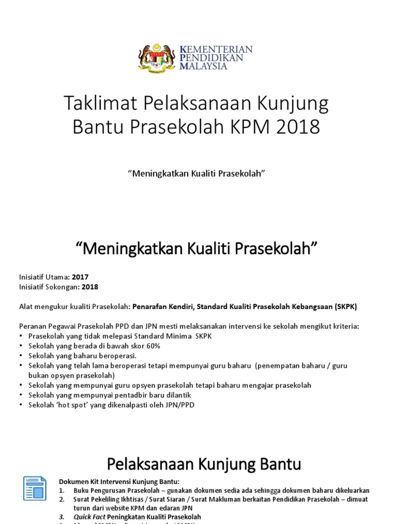 Nkra commitment to ensuring quality pre schools in malaysia the national pre school quality standard skpk assessment instrument was launched in may 2013. Bilangan aktiviti formal dengan ibu bapa penjaga. Selain memperluas akses dan meningkatkan enrolmen pendidikan prasekolah kepada kanak kanak seawal usia empat tahun kementerian pendidikan juga akan memastikan kualiti pendidikan prasekolah mampu melahirkan modal insan berkualiti. 24 jun 2015 rabu.