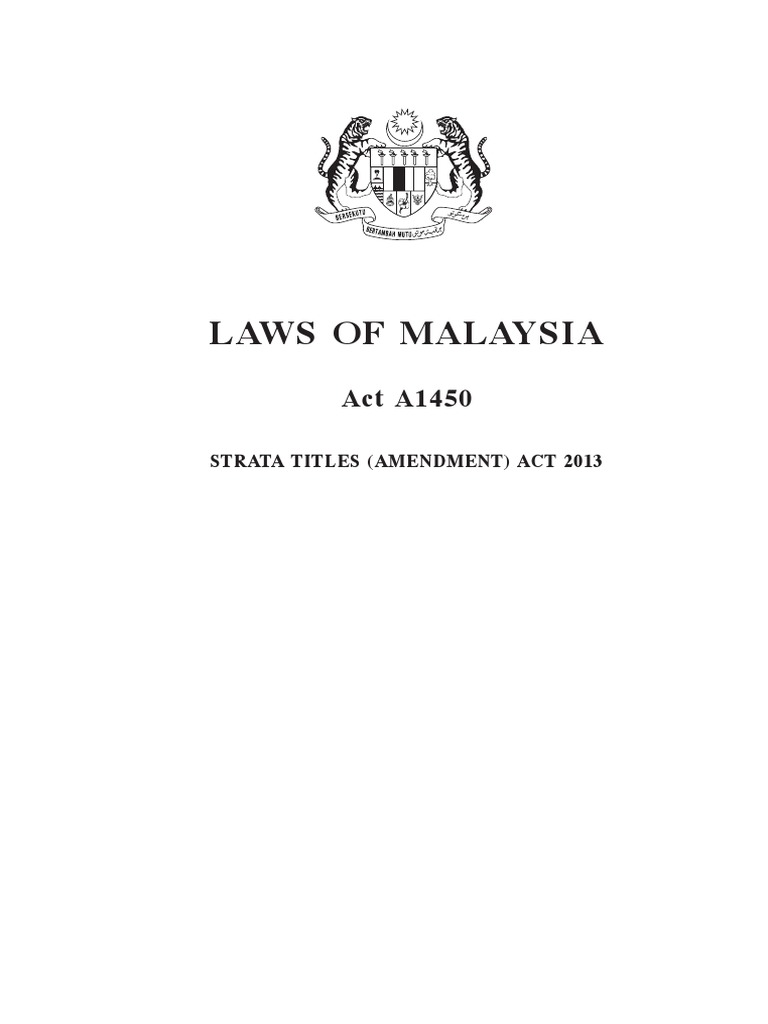 05 14 14 ainul jaria maidin law 3111 037 it repealed the former strata provisions in the nlc 1965 which governed strata projects including applications for subdivision of multi storey buildings and the subsequent issuance of strata titles which were formerly called subsidiary titles it came into effect on 1st of june 1985 vide pu b 276 85. Documents of strata title. This act may be cited as the strata titles act 1985. 126b application of hudc housing estates act and housing and development act after registration of strata title application or issue of subsidiary strata certificates of title 127 issue of subsidiary strata certificates of title for flats with subsisting leases registered under registration of deeds act where land is vested in flat owners as tenants in common.