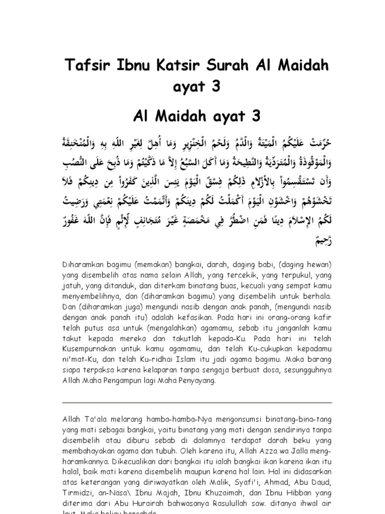 Published on aug 3 2020. Kandungan surah al maidah ayat 3 menjelaskan tentang larangan memakai bangkai dan larangan berjudi. Jika anda ingin membaca surat ini seluruhnya anda bisa klik surat al maidah lengkap dengan arab dan terjemahnya. Pada hari ini telah kusempurnakan untuk kamu agamamu dan telah ku cukupkan kepadamu nikmat ku dan telah ku ridhai islam itu jadi agama bagimu.