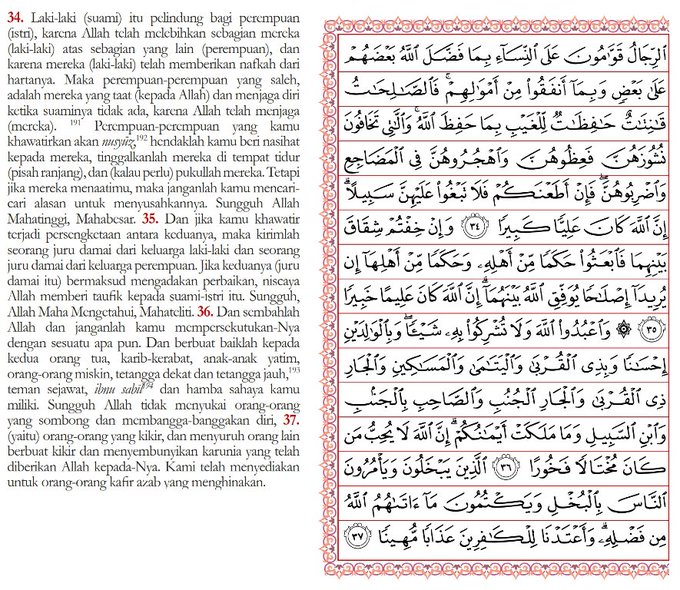Berikut ini adalah tafsir dan terjemah dari surah an nisa ayat 34. Surat annisa ayat 34 sahabat kali ini admin akan berbagi informasi tentang surat annisa ayat 34 menggunakan format bahasa arab dan juga latin dan indonesia. Jika anda ingin membaca surat ini seluruhnya anda bisa klik surat annisa lengkap dengan arab dan terjemahnya. Surat an nisa ayat 34 tentang kewajiban suami istri a.