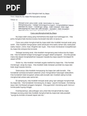 Syarahan cara cara menghormati ibu bapa. Kita sebagai seorang anak seharusnya tahu cara cara untuk taat kepada ibu bapa tamsilnya mendengar segala nasihat dan suruhan mereka menolong mereka melakukan kerja rumah dan sebagainya justeru kita perlulah ingat jika ibu bapa tidak meredhakan sesuatu tindakan atau keputusan yang kita lakukan kita seharusnya ingat bahawa ibu bapa adalah orang penting dalam memberi restu mereka kepada. Cara cara menghormati guru contoh karangan 1. Contoh karangan cara cara menghormati guru. Tulis syarahan itu selengkapnya.