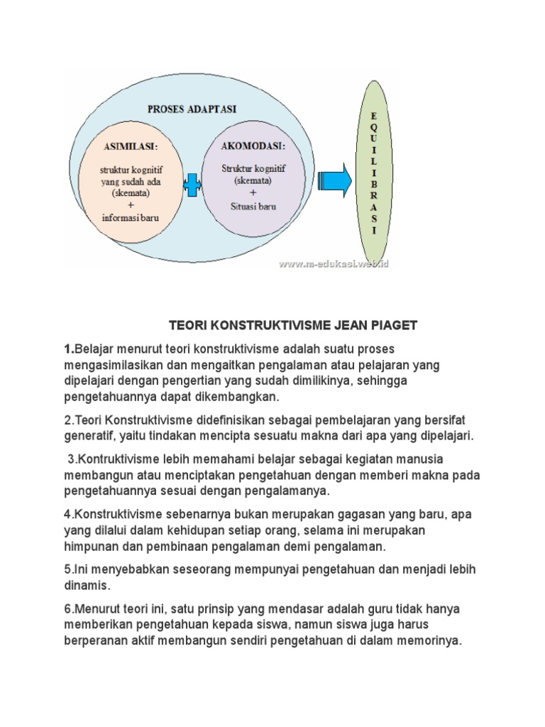 Beberapa teori yang melandasi pembelajaran konstruktivistik antara lain. Pembelajar aktif dalam mengkonstruksikan pengetahuannya sendiri dan bahwa interaksi sosial penting. Piaget theory are you looking for jean piaget s theory of cognitive development notes then you are in the right place. Sebagai proses penyesuaian atau penyesuian atau penyusunan kembali skema ke dalam situasi yang baru.