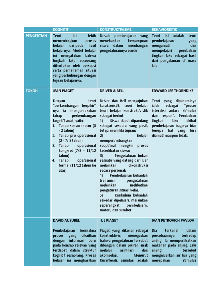 Peran guru dalam pembelajaran menurut teori kontruktivisme adalah sebagai fasilitator atau. Program studi pendidikan seni rupa fakultas bahasa dan seni universitas negeri medan e mail. Teori teori kognitif pengenalan pada masa dahulu apabila memperkatakan tentang sikap manusia tidak dikaitkan dengan bidang psikologi walaupun kajian terhadapnya telah dilakukan sekian lama. Jean piaget s theory is one of the influential theories of all time.