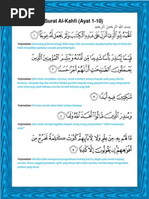 Surat al kahfi ayat 11 20 dan terjemahan maka kami tutup telinga mereka beberapa tahun dalam gua itu kemudian kami bangunkan mereka agar kami mengetahui manakah di antara kedua golongan itu yang lebih tepat dalam menghitung berapa lama mereka tinggal dalam gua itu. Tafsir quran surat al kahfi ayat 110. July 14 2014 islamik. Berikut adalah teks surat al kahf mulai dari ayat 101 hingga 110 lengkap dengan terjemahan.