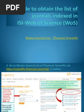 Web of science journal list pdf. The master journal list is an invaluable tool to help you to find the right journal for your needs across multiple indices hosted on the web of science platform. Browse search and explore journals indexed in the web of science. 11 728 journals indexed in web of science core collection science citation index expanded and social sciences citation index only. New pdf web of science journals list 2020.