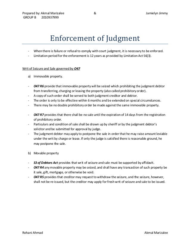 Writ Of Seizure And Sale Malaysia